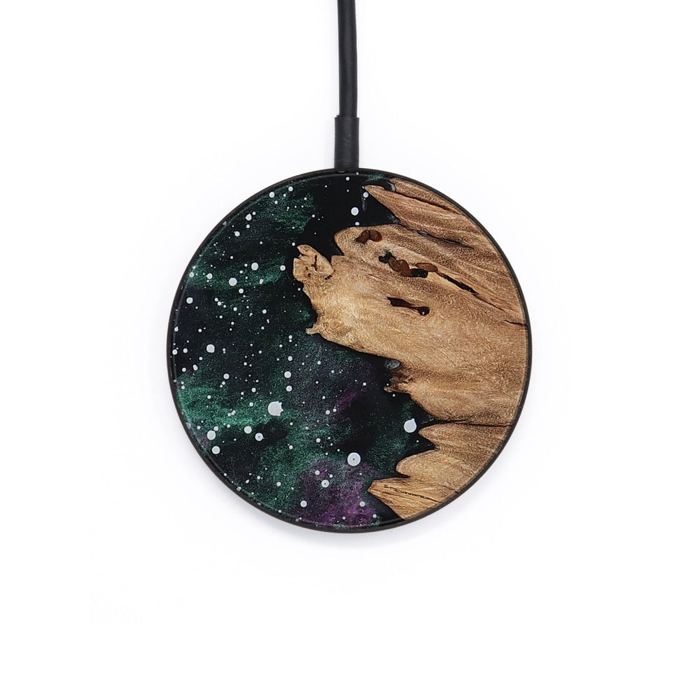 Perfectly simple, MagSafe compatible, USB-C, 1 of a kind Wireless Qi charger. CNC machined aluminum body. Every Wood+Resin inlay is unique and made at our shop in Elkhart, Indiana.