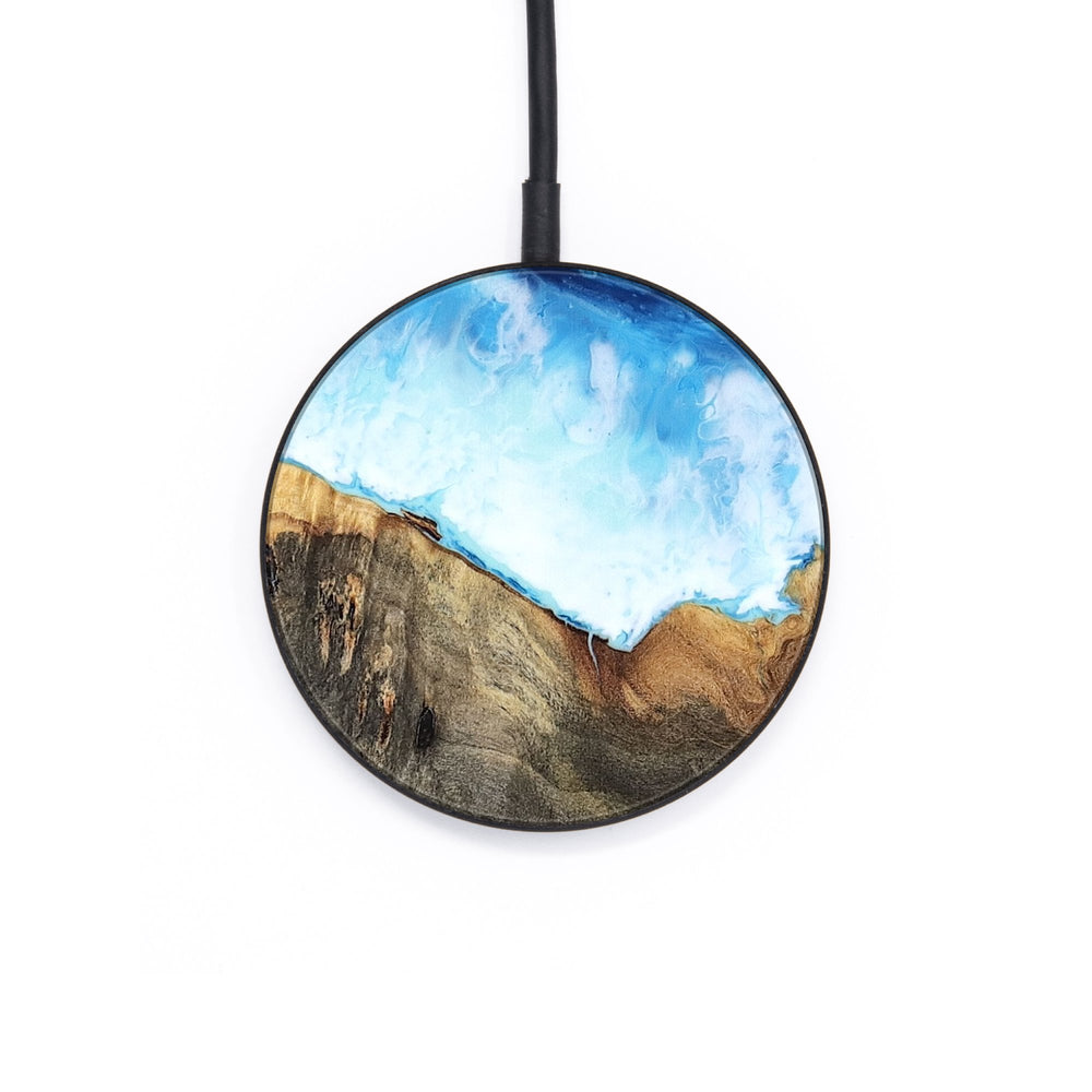 Perfectly simple, MagSafe compatible, USB-C, 1 of a kind Wireless Qi charger. CNC machined aluminum body. Every Wood+Resin inlay is unique and made at our shop in Elkhart, Indiana.