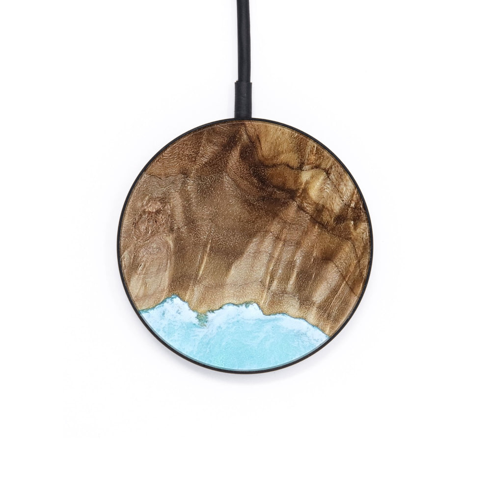 Perfectly simple, MagSafe compatible, USB-C, 1 of a kind Wireless Qi charger. CNC machined aluminum body. Every Wood+Resin inlay is unique and made at our shop in Elkhart, Indiana.