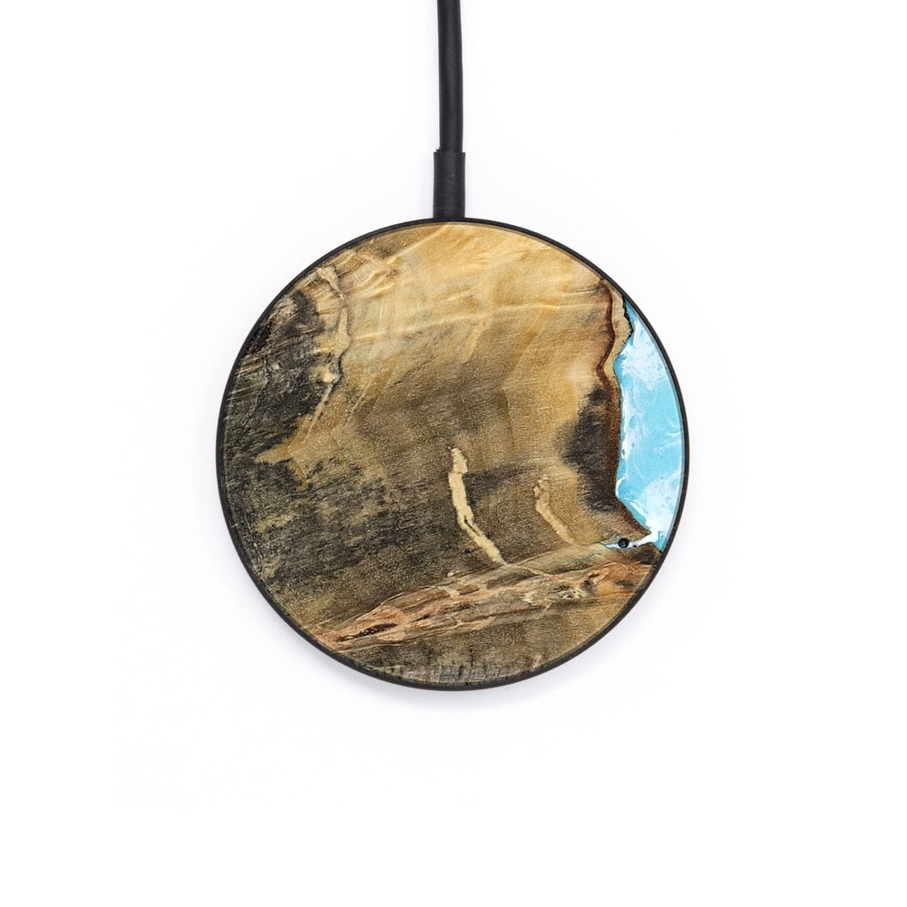 Perfectly simple, MagSafe compatible, USB-C, 1 of a kind Wireless Qi charger. CNC machined aluminum body. Every Wood+Resin inlay is unique and made at our shop in Elkhart, Indiana.