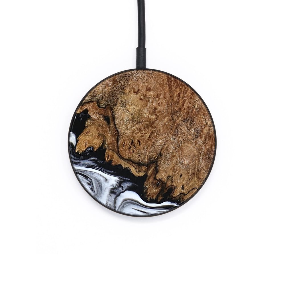 Perfectly simple, MagSafe compatible, USB-C, 1 of a kind Wireless Qi charger. CNC machined aluminum body. Every Wood+Resin inlay is unique and made at our shop in Elkhart, Indiana.