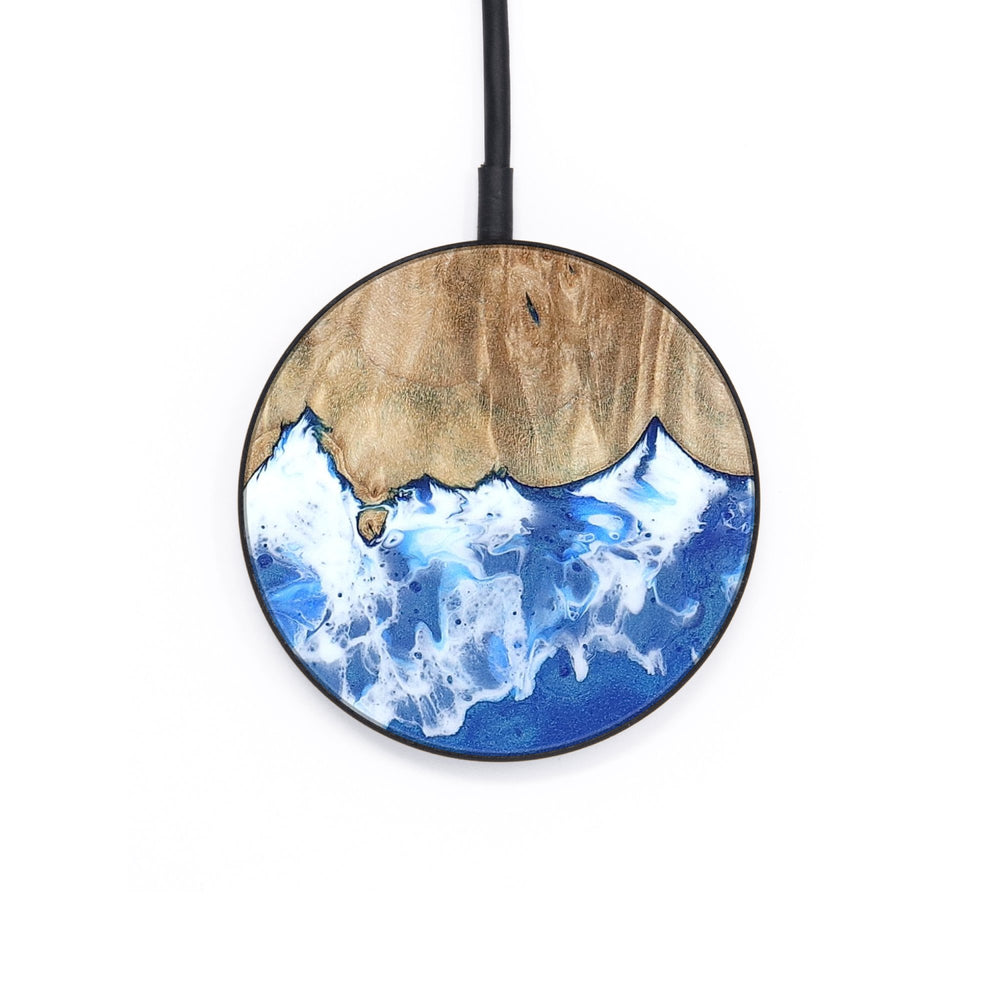 Perfectly simple, MagSafe compatible, USB-C, 1 of a kind Wireless Qi charger. CNC machined aluminum body. Every Wood+Resin inlay is unique and made at our shop in Elkhart, Indiana.