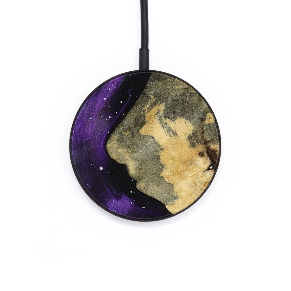 Perfectly simple, MagSafe compatible, USB-C, 1 of a kind Wireless Qi charger. CNC machined aluminum body. Every Wood+Resin inlay is unique and made at our shop in Elkhart, Indiana.