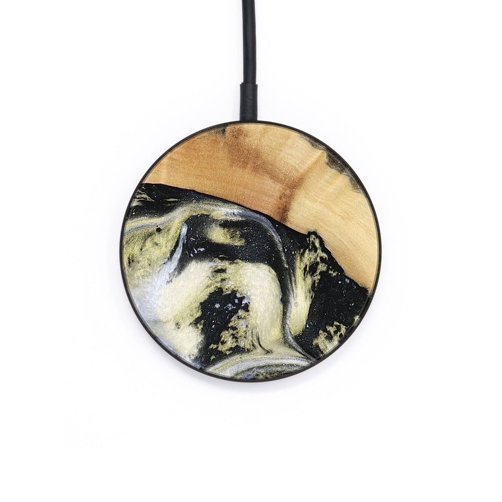 Perfectly simple, MagSafe compatible, USB-C, 1 of a kind Wireless Qi charger. CNC machined aluminum body. Every Wood+Resin inlay is unique and made at our shop in Elkhart, Indiana.