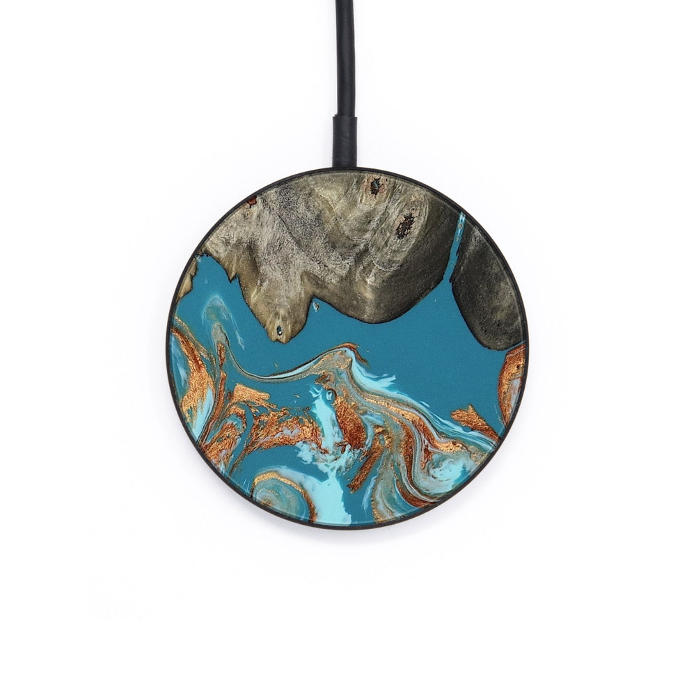 Perfectly simple, MagSafe compatible, USB-C, 1 of a kind Wireless Qi charger. CNC machined aluminum body. Every Wood+Resin inlay is unique and made at our shop in Elkhart, Indiana.