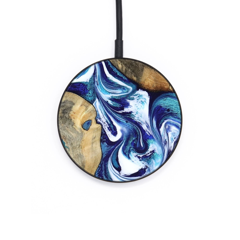 Perfectly simple, MagSafe compatible, USB-C, 1 of a kind Wireless Qi charger. CNC machined aluminum body. Every Wood+Resin inlay is unique and made at our shop in Elkhart, Indiana.