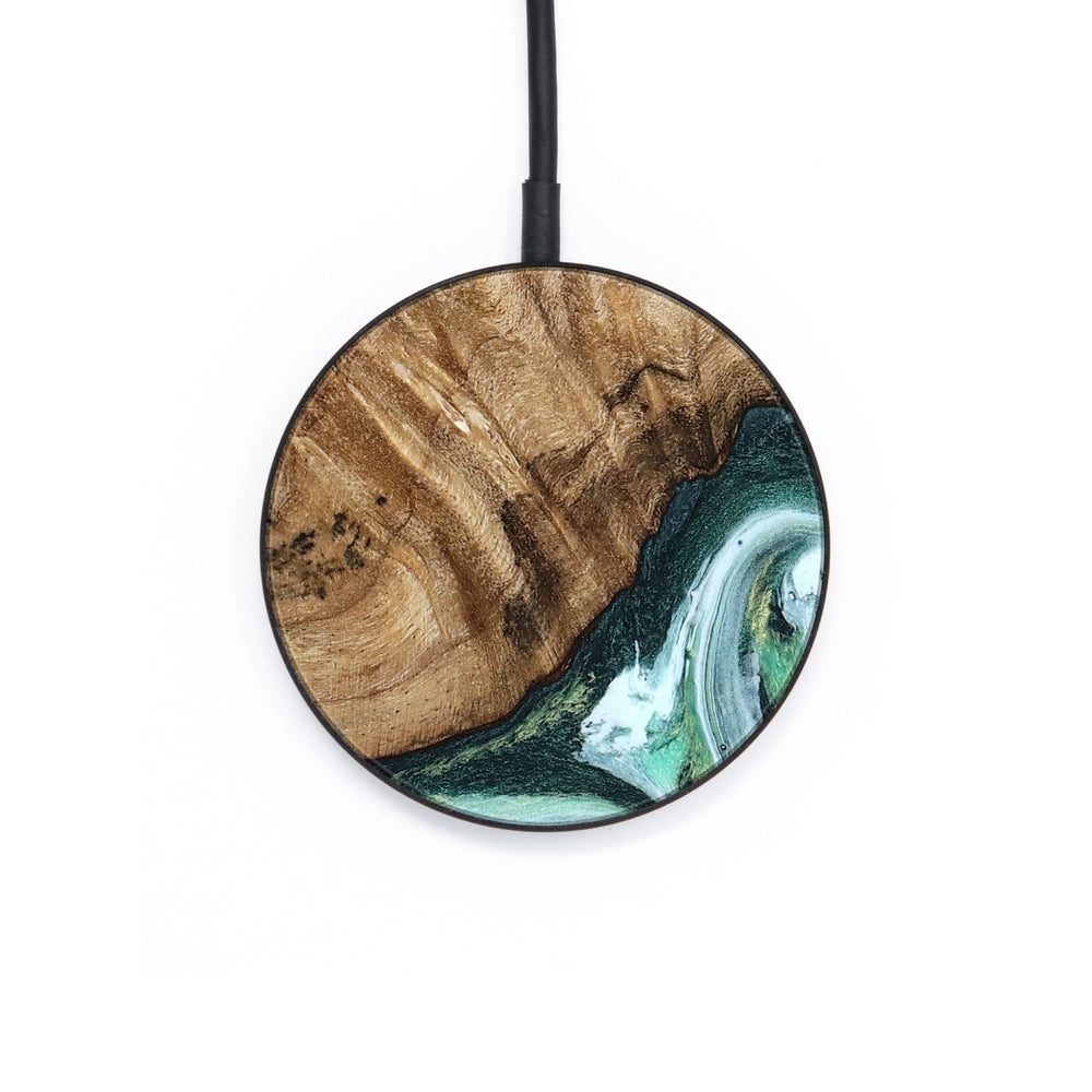 Perfectly simple, MagSafe compatible, USB-C, 1 of a kind Wireless Qi charger. CNC machined aluminum body. Every Wood+Resin inlay is unique and made at our shop in Elkhart, Indiana.