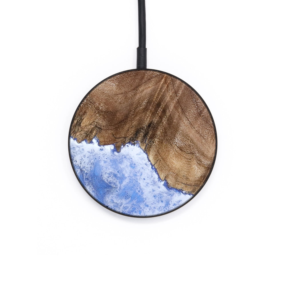 Perfectly simple, MagSafe compatible, USB-C, 1 of a kind Wireless Qi charger. CNC machined aluminum body. Every Wood+Resin inlay is unique and made at our shop in Elkhart, Indiana.