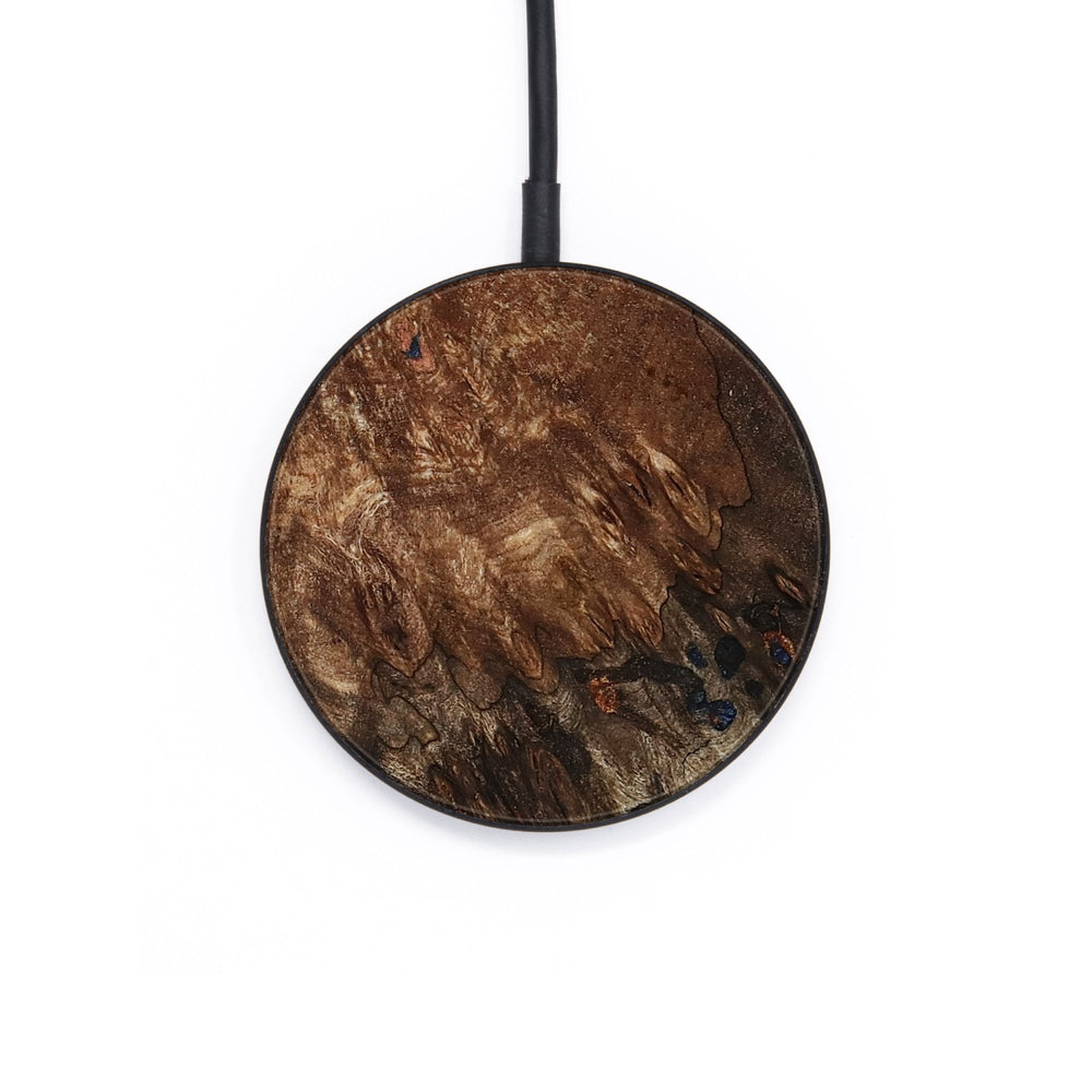 Perfectly simple, MagSafe compatible, USB-C, 1 of a kind Wireless Qi charger. CNC machined aluminum body. Every Wood+Resin inlay is unique and made at our shop in Elkhart, Indiana.