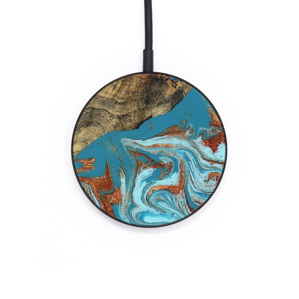 Perfectly simple, MagSafe compatible, USB-C, 1 of a kind Wireless Qi charger. CNC machined aluminum body. Every Wood+Resin inlay is unique and made at our shop in Elkhart, Indiana.