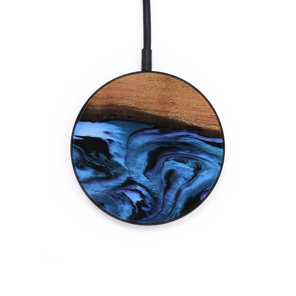 Perfectly simple, MagSafe compatible, USB-C, 1 of a kind Wireless Qi charger. CNC machined aluminum body. Every Wood+Resin inlay is unique and made at our shop in Elkhart, Indiana.