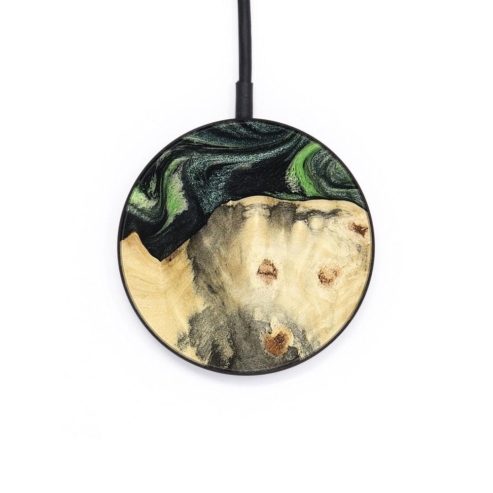Perfectly simple, MagSafe compatible, USB-C, 1 of a kind Wireless Qi charger. CNC machined aluminum body. Every Wood+Resin inlay is unique and made at our shop in Elkhart, Indiana.