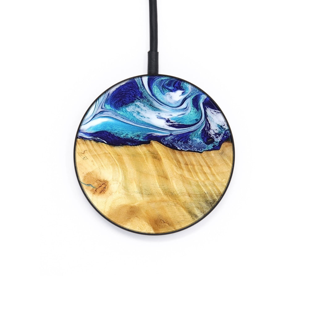 Perfectly simple, MagSafe compatible, USB-C, 1 of a kind Wireless Qi charger. CNC machined aluminum body. Every Wood+Resin inlay is unique and made at our shop in Elkhart, Indiana.