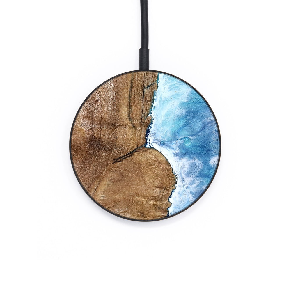Perfectly simple, MagSafe compatible, USB-C, 1 of a kind Wireless Qi charger. CNC machined aluminum body. Every Wood+Resin inlay is unique and made at our shop in Elkhart, Indiana.