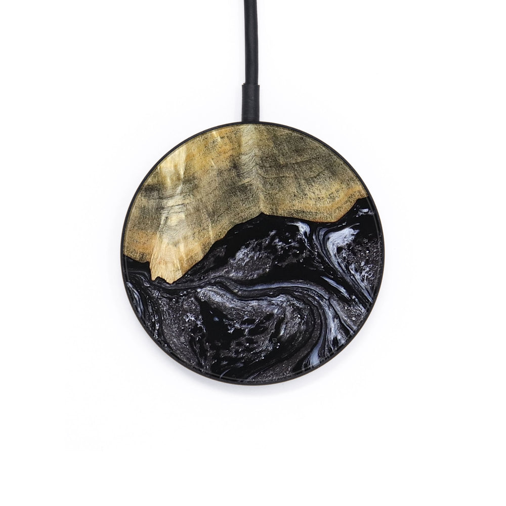 Perfectly simple, MagSafe compatible, USB-C, 1 of a kind Wireless Qi charger. CNC machined aluminum body. Every Wood+Resin inlay is unique and made at our shop in Elkhart, Indiana.
