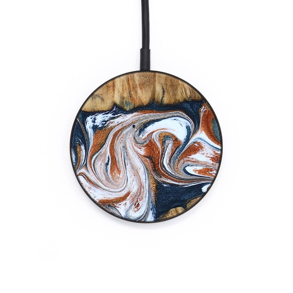 Perfectly simple, MagSafe compatible, USB-C, 1 of a kind Wireless Qi charger. CNC machined aluminum body. Every Wood+Resin inlay is unique and made at our shop in Elkhart, Indiana.