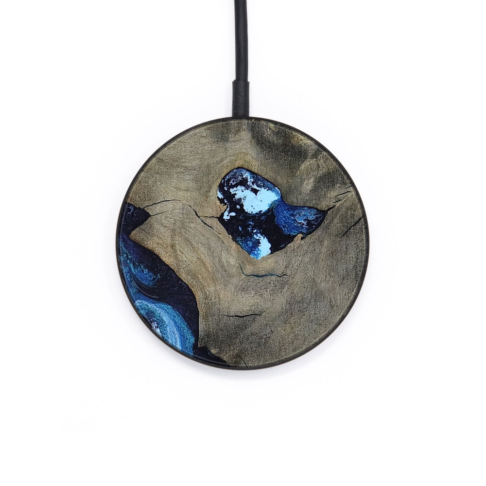 Perfectly simple, MagSafe compatible, USB-C, 1 of a kind Wireless Qi charger. CNC machined aluminum body. Every Wood+Resin inlay is unique and made at our shop in Elkhart, Indiana.