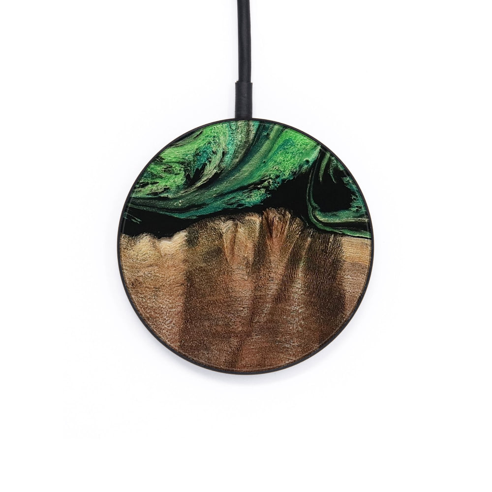 Perfectly simple, MagSafe compatible, USB-C, 1 of a kind Wireless Qi charger. CNC machined aluminum body. Every Wood+Resin inlay is unique and made at our shop in Elkhart, Indiana.