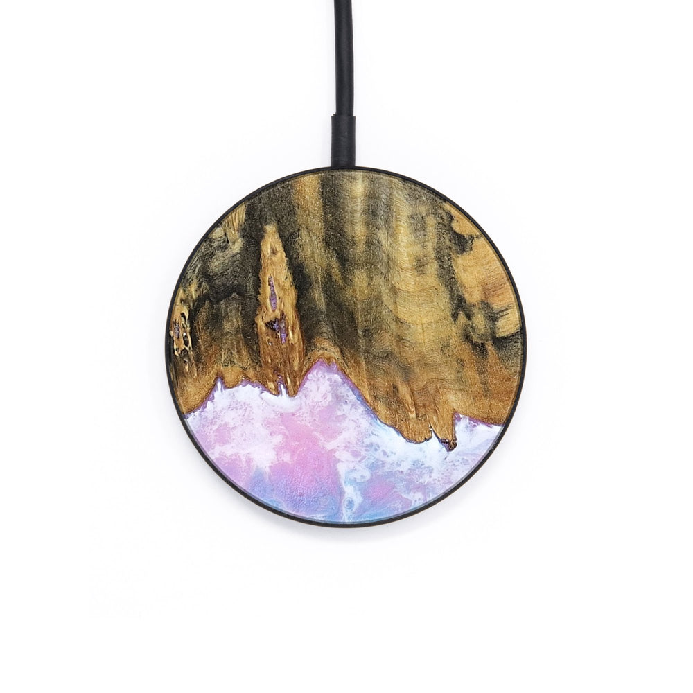 Perfectly simple, MagSafe compatible, USB-C, 1 of a kind Wireless Qi charger. CNC machined aluminum body. Every Wood+Resin inlay is unique and made at our shop in Elkhart, Indiana.