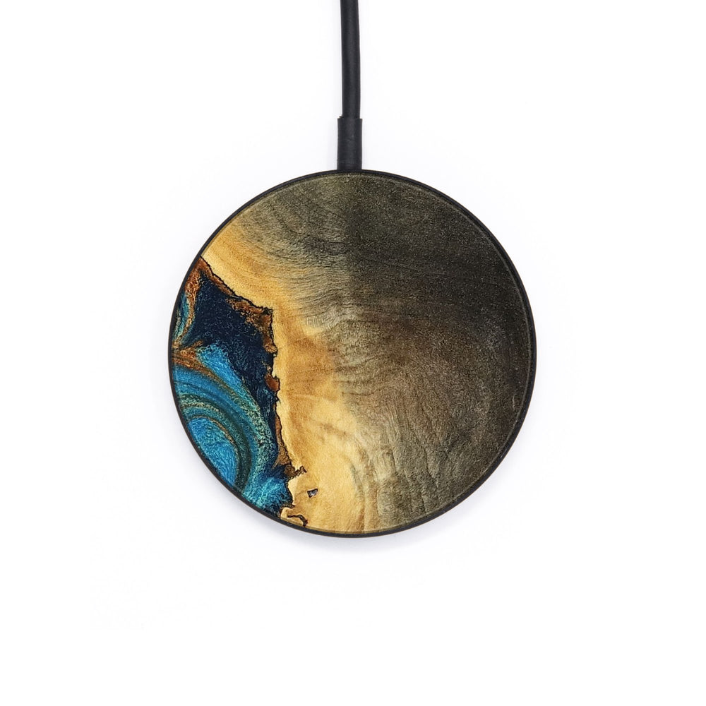 Perfectly simple, MagSafe compatible, USB-C, 1 of a kind Wireless Qi charger. CNC machined aluminum body. Every Wood+Resin inlay is unique and made at our shop in Elkhart, Indiana.