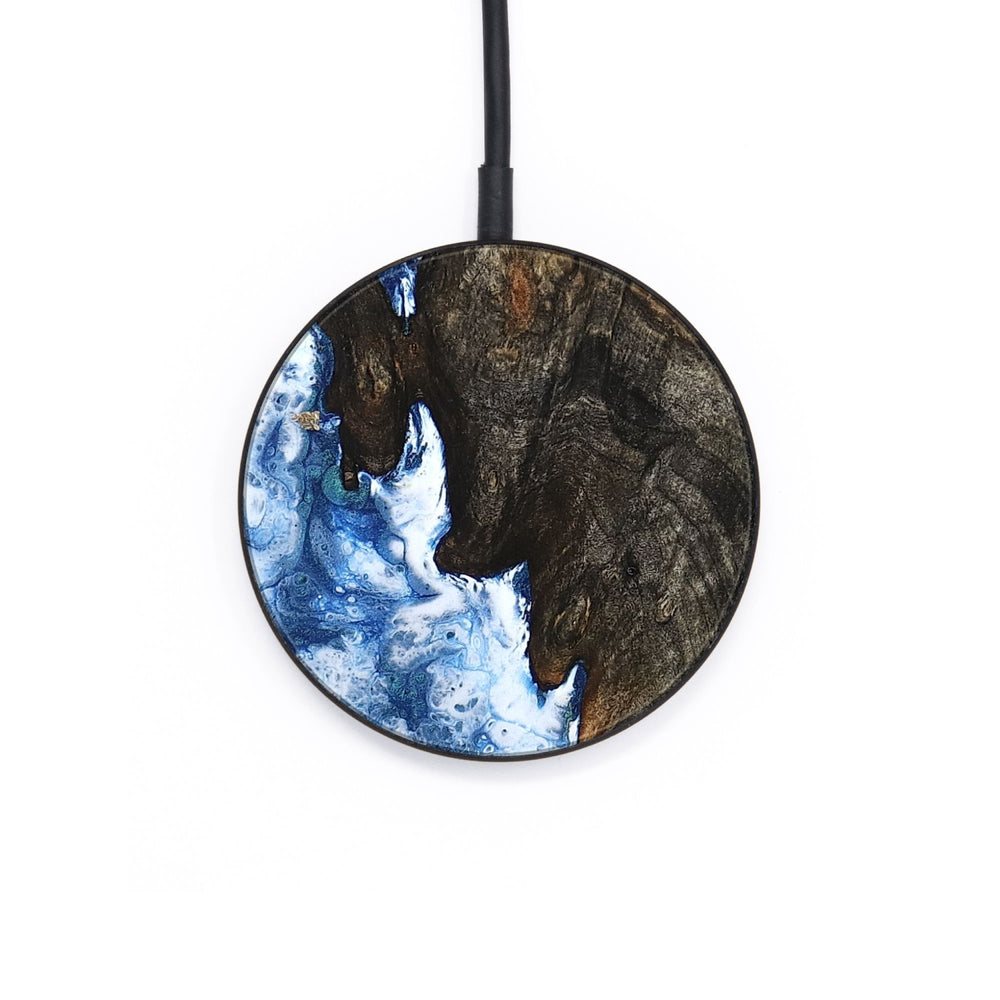 Perfectly simple, MagSafe compatible, USB-C, 1 of a kind Wireless Qi charger. CNC machined aluminum body. Every Wood+Resin inlay is unique and made at our shop in Elkhart, Indiana.