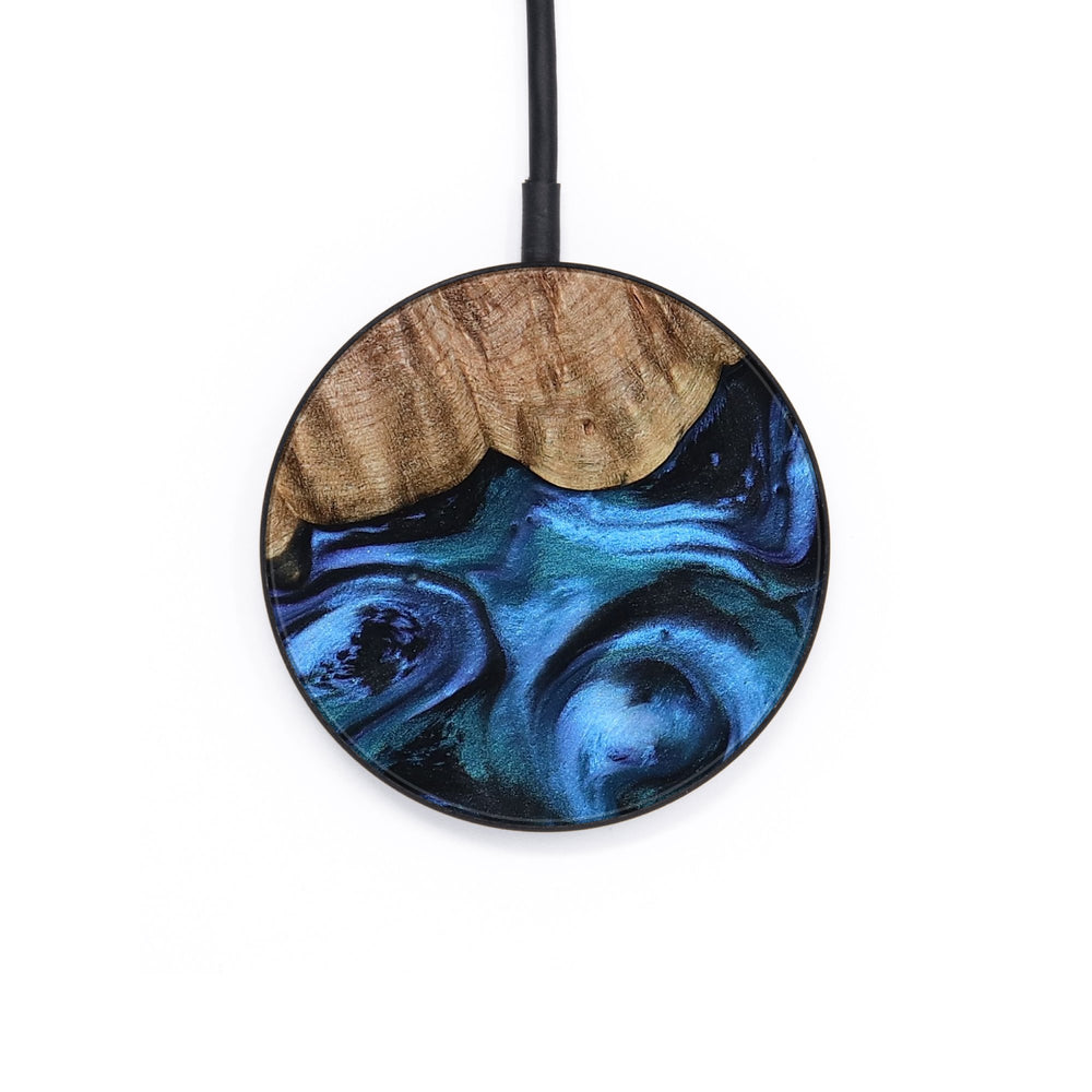 Perfectly simple, MagSafe compatible, USB-C, 1 of a kind Wireless Qi charger. CNC machined aluminum body. Every Wood+Resin inlay is unique and made at our shop in Elkhart, Indiana.