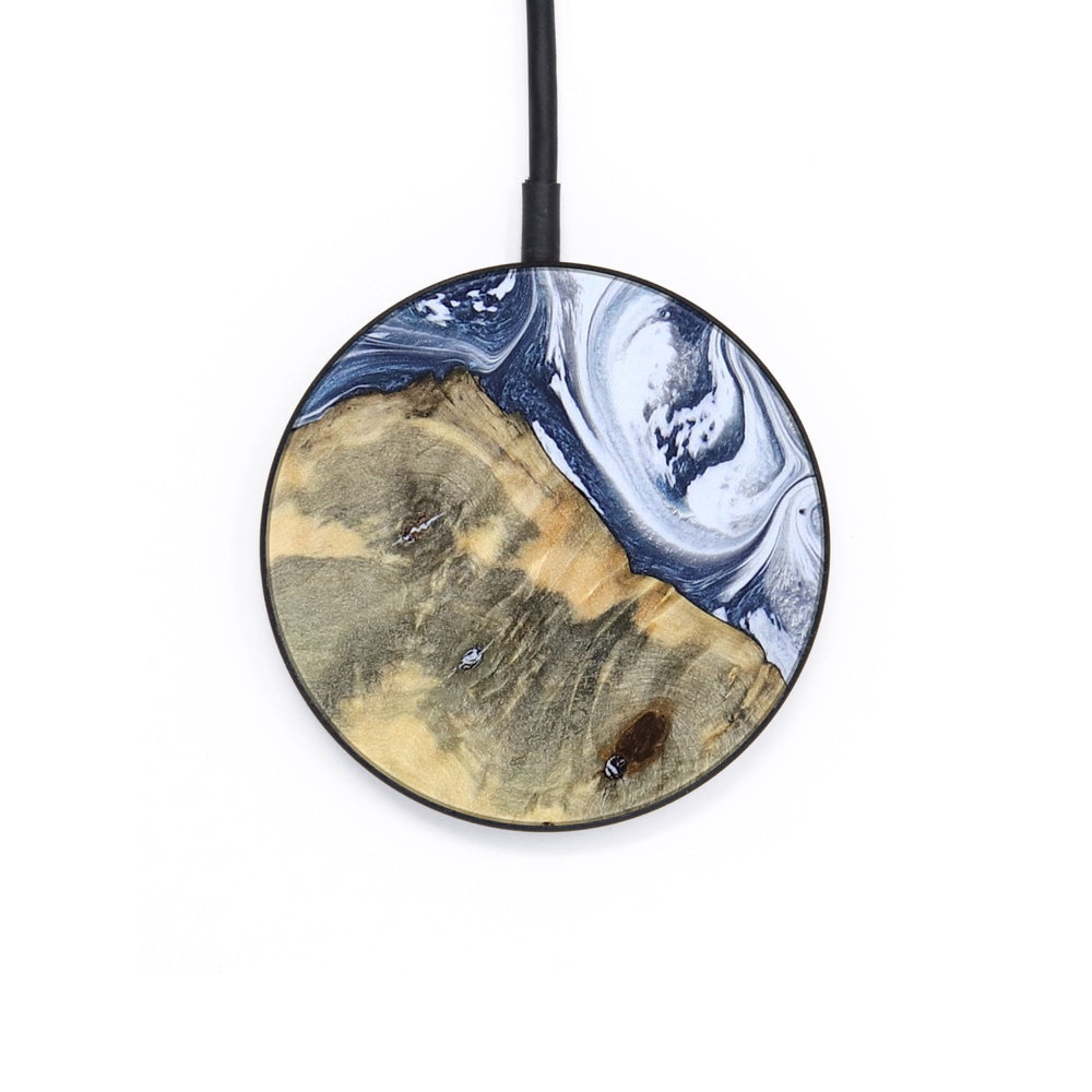 Perfectly simple, MagSafe compatible, USB-C, 1 of a kind Wireless Qi charger. CNC machined aluminum body. Every Wood+Resin inlay is unique and made at our shop in Elkhart, Indiana.
