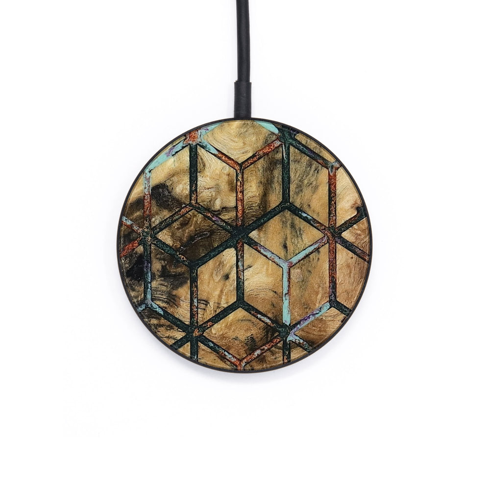 Perfectly simple, MagSafe compatible, USB-C, 1 of a kind Wireless Qi charger. CNC machined aluminum body. Every Wood+Resin inlay is unique and made at our shop in Elkhart, Indiana.