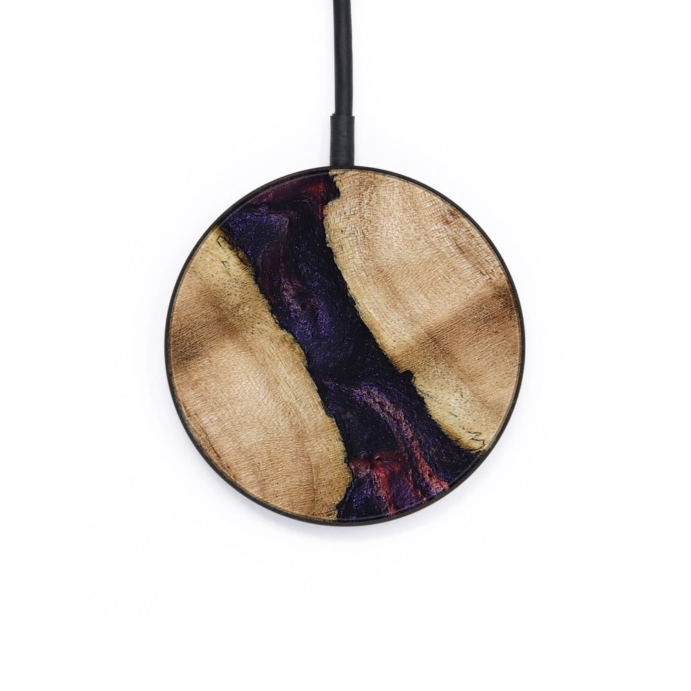 Perfectly simple, MagSafe compatible, USB-C, 1 of a kind Wireless Qi charger. CNC machined aluminum body. Every Wood+Resin inlay is unique and made at our shop in Elkhart, Indiana.