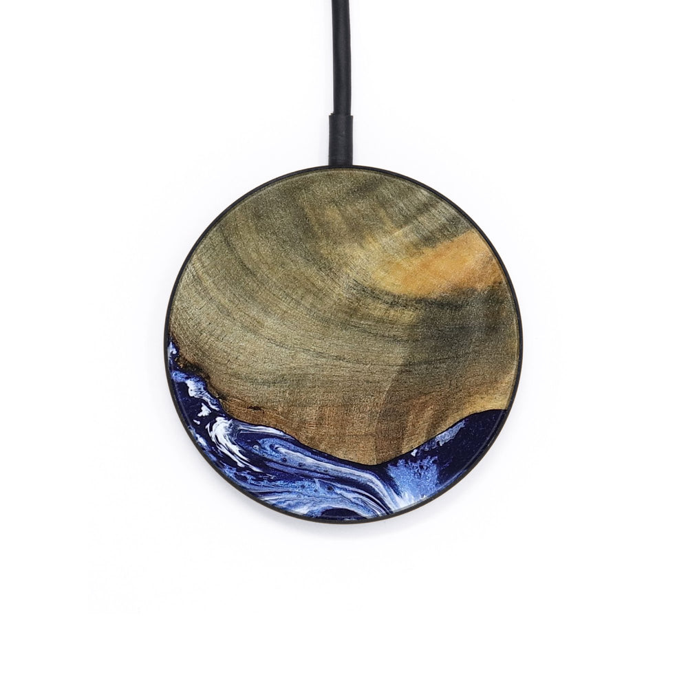 Perfectly simple, MagSafe compatible, USB-C, 1 of a kind Wireless Qi charger. CNC machined aluminum body. Every Wood+Resin inlay is unique and made at our shop in Elkhart, Indiana.