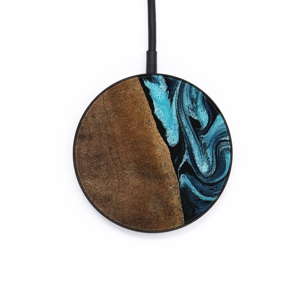 Perfectly simple, MagSafe compatible, USB-C, 1 of a kind Wireless Qi charger. CNC machined aluminum body. Every Wood+Resin inlay is unique and made at our shop in Elkhart, Indiana.