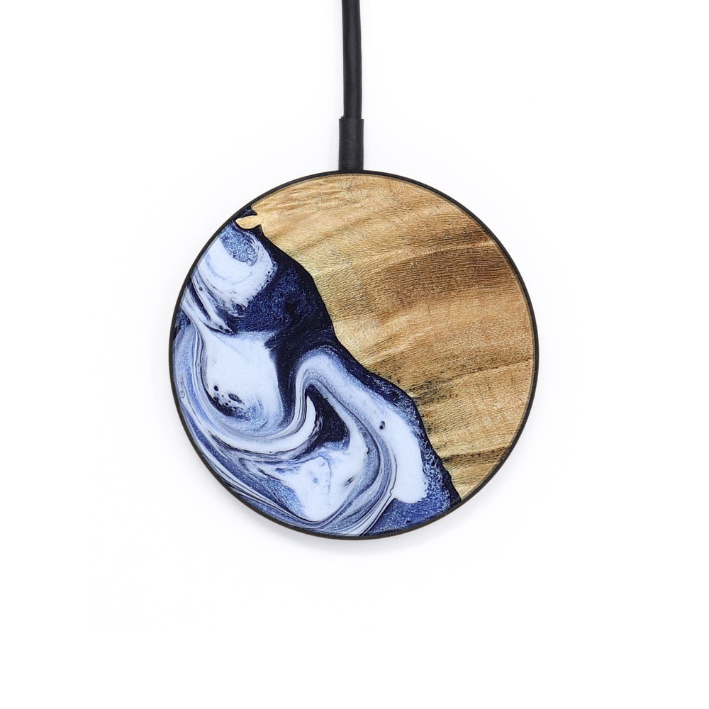 Perfectly simple, MagSafe compatible, USB-C, 1 of a kind Wireless Qi charger. CNC machined aluminum body. Every Wood+Resin inlay is unique and made at our shop in Elkhart, Indiana.