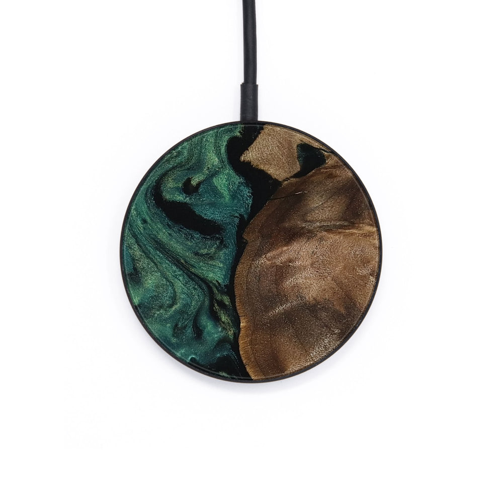 Perfectly simple, MagSafe compatible, USB-C, 1 of a kind Wireless Qi charger. CNC machined aluminum body. Every Wood+Resin inlay is unique and made at our shop in Elkhart, Indiana.