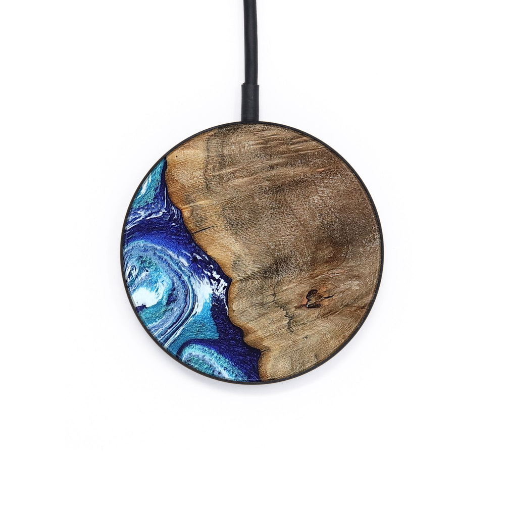 Perfectly simple, MagSafe compatible, USB-C, 1 of a kind Wireless Qi charger. CNC machined aluminum body. Every Wood+Resin inlay is unique and made at our shop in Elkhart, Indiana.