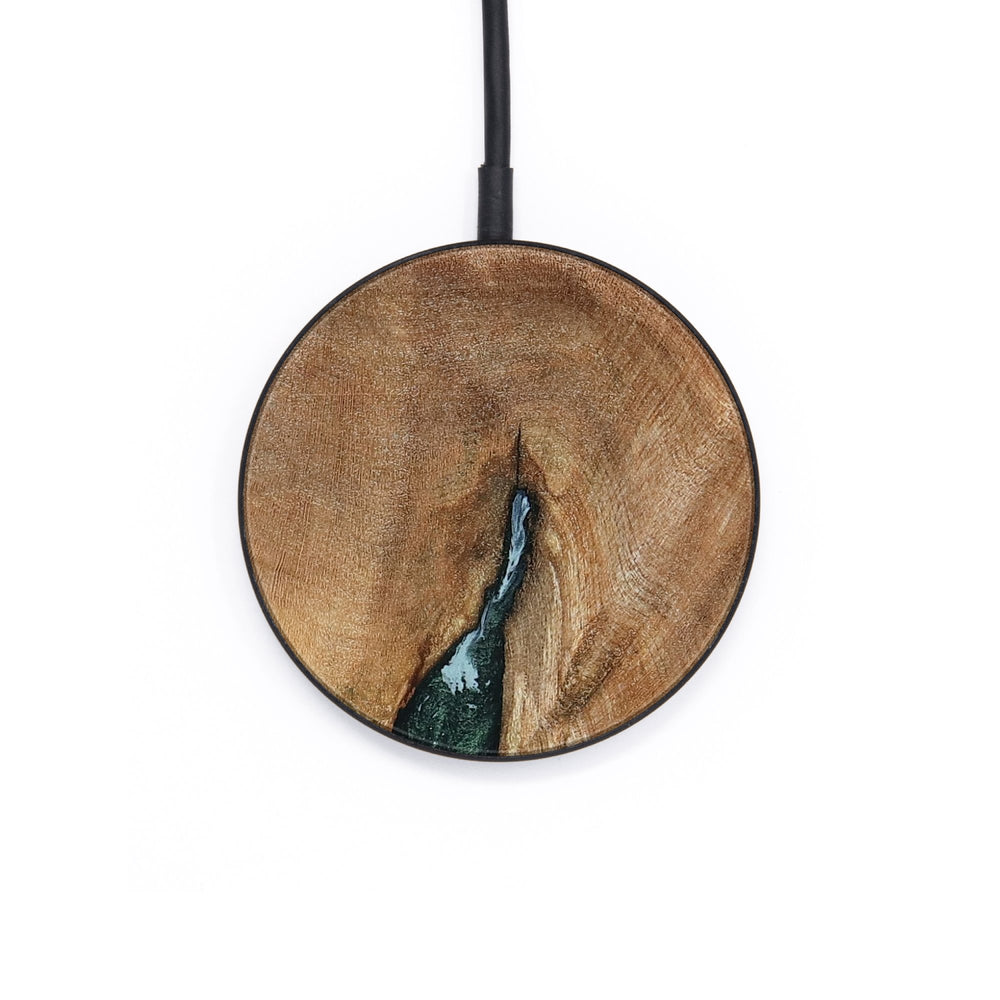 Perfectly simple, MagSafe compatible, USB-C, 1 of a kind Wireless Qi charger. CNC machined aluminum body. Every Wood+Resin inlay is unique and made at our shop in Elkhart, Indiana.