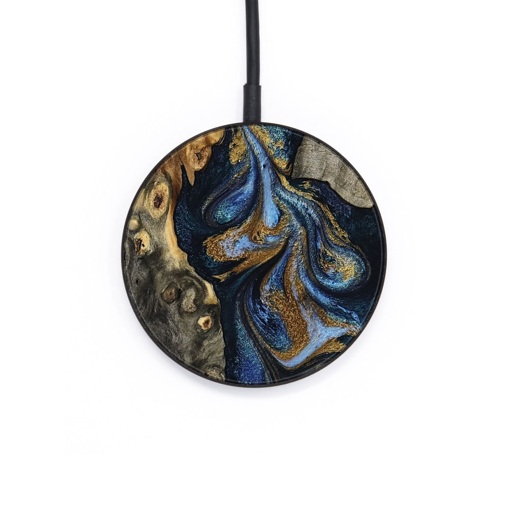 Perfectly simple, MagSafe compatible, USB-C, 1 of a kind Wireless Qi charger. CNC machined aluminum body. Every Wood+Resin inlay is unique and made at our shop in Elkhart, Indiana.