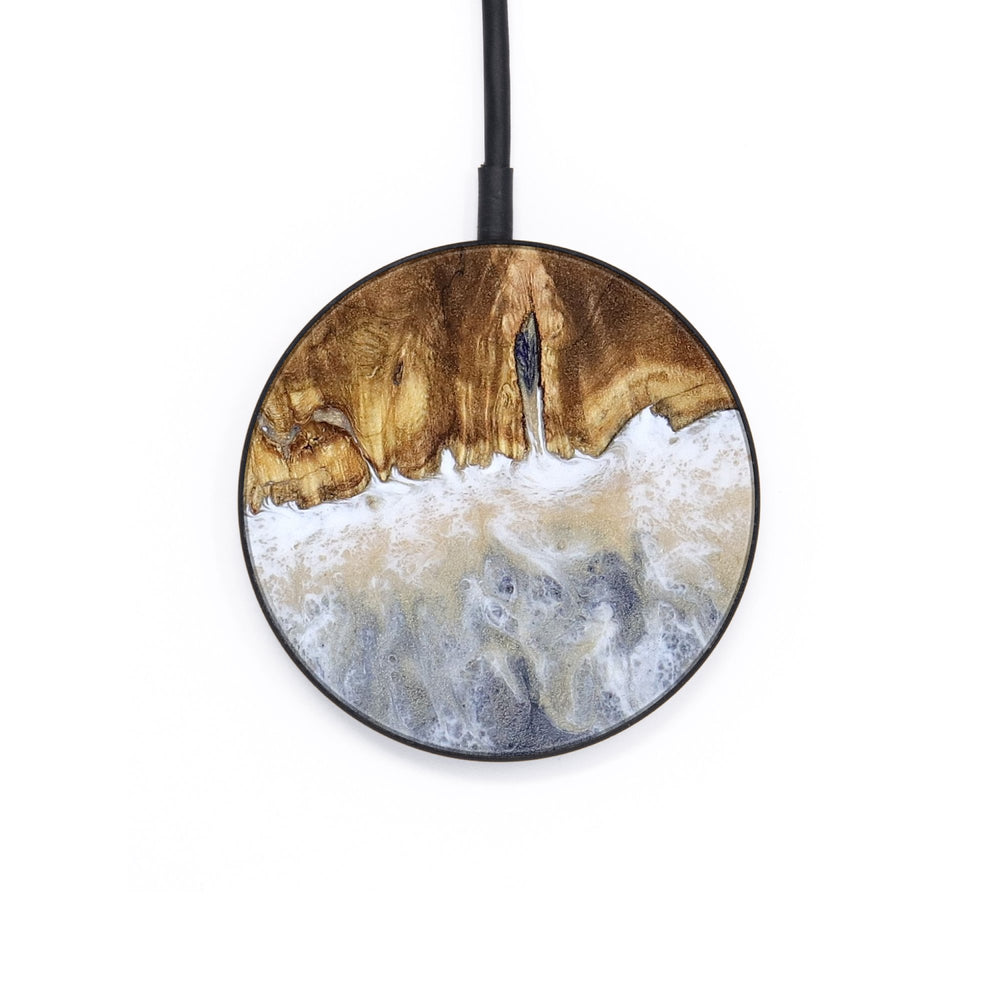 Perfectly simple, MagSafe compatible, USB-C, 1 of a kind Wireless Qi charger. CNC machined aluminum body. Every Wood+Resin inlay is unique and made at our shop in Elkhart, Indiana.