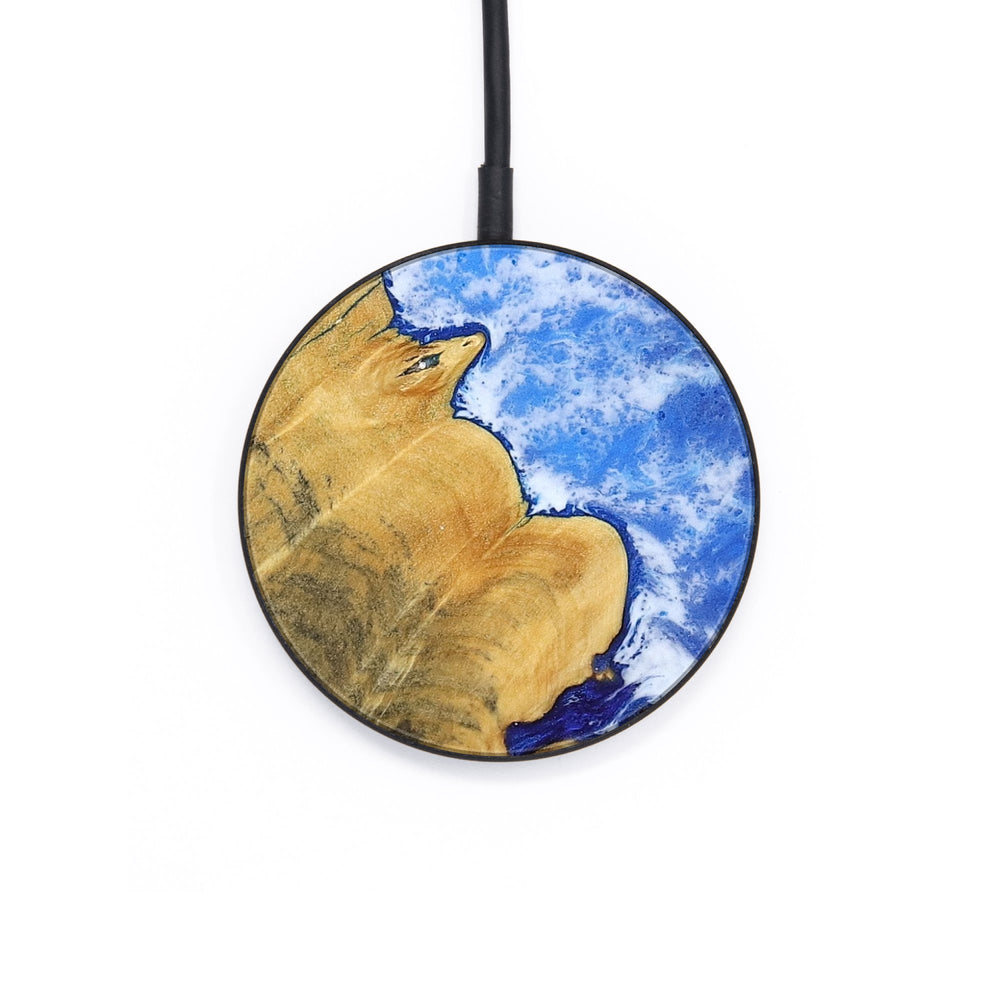 Perfectly simple, MagSafe compatible, USB-C, 1 of a kind Wireless Qi charger. CNC machined aluminum body. Every Wood+Resin inlay is unique and made at our shop in Elkhart, Indiana.