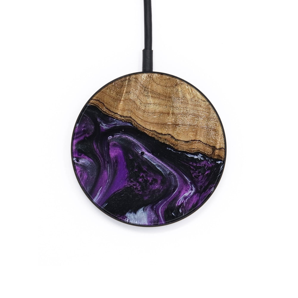 Perfectly simple, MagSafe compatible, USB-C, 1 of a kind Wireless Qi charger. CNC machined aluminum body. Every Wood+Resin inlay is unique and made at our shop in Elkhart, Indiana.