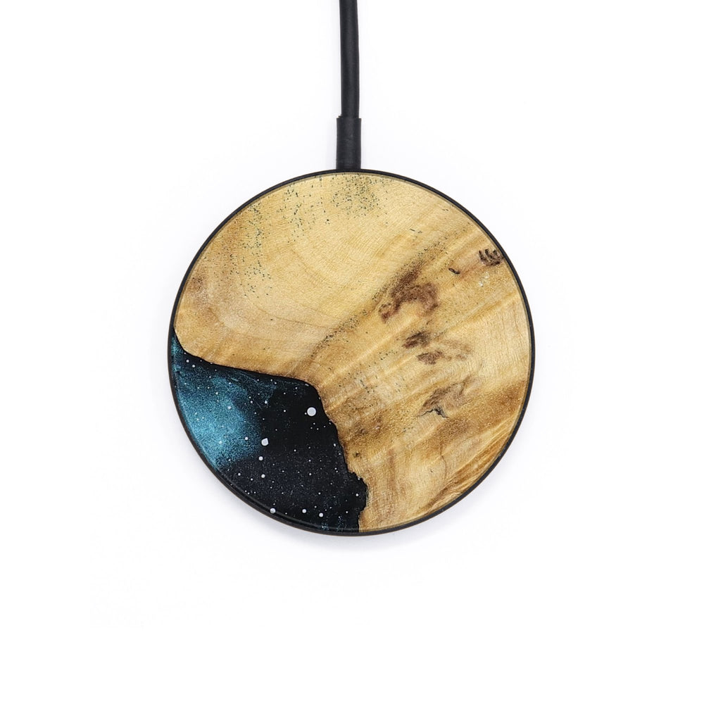 Perfectly simple, MagSafe compatible, USB-C, 1 of a kind Wireless Qi charger. CNC machined aluminum body. Every Wood+Resin inlay is unique and made at our shop in Elkhart, Indiana.