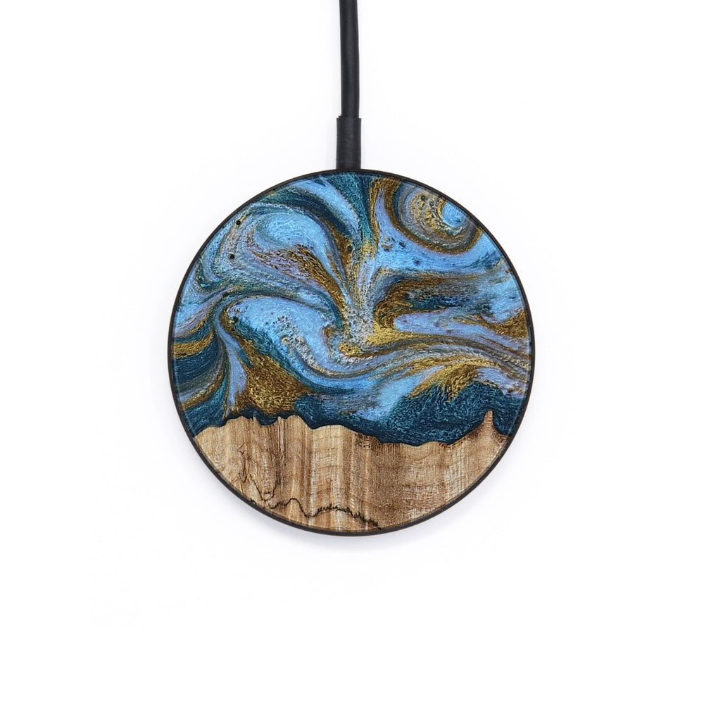 Perfectly simple, MagSafe compatible, USB-C, 1 of a kind Wireless Qi charger. CNC machined aluminum body. Every Wood+Resin inlay is unique and made at our shop in Elkhart, Indiana.