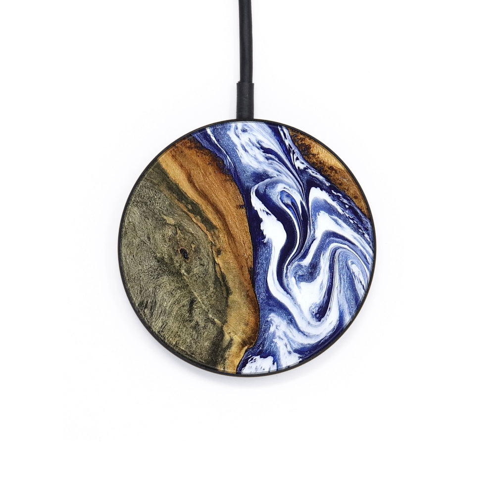 Perfectly simple, MagSafe compatible, USB-C, 1 of a kind Wireless Qi charger. CNC machined aluminum body. Every Wood+Resin inlay is unique and made at our shop in Elkhart, Indiana.