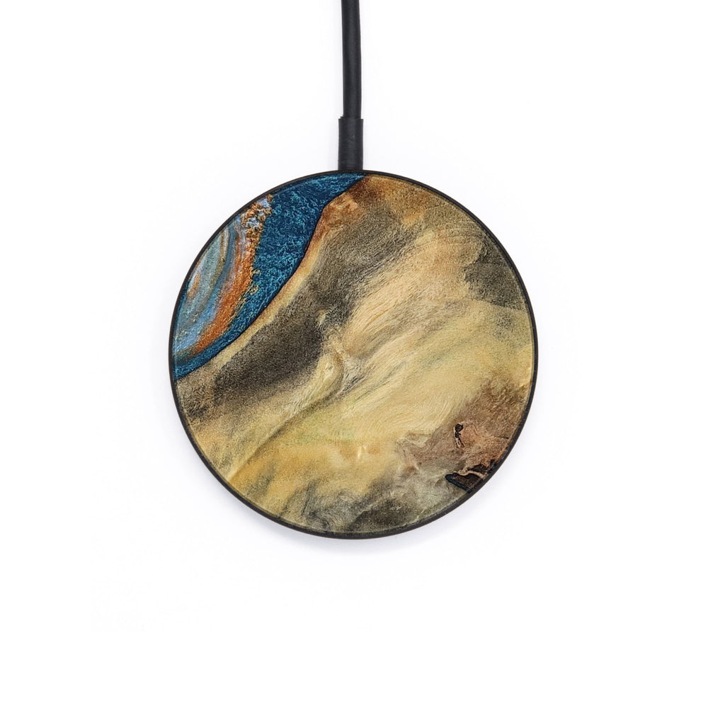 Perfectly simple, MagSafe compatible, USB-C, 1 of a kind Wireless Qi charger. CNC machined aluminum body. Every Wood+Resin inlay is unique and made at our shop in Elkhart, Indiana.
