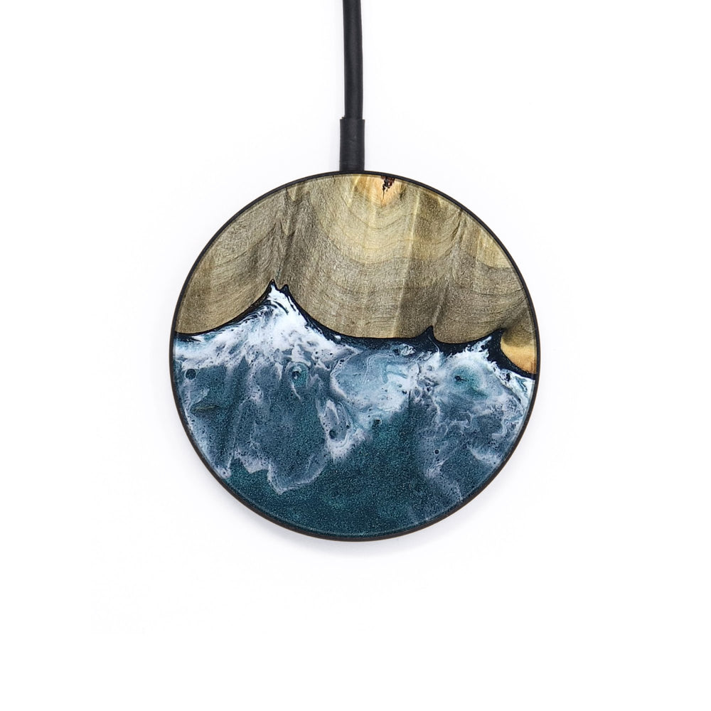 Perfectly simple, MagSafe compatible, USB-C, 1 of a kind Wireless Qi charger. CNC machined aluminum body. Every Wood+Resin inlay is unique and made at our shop in Elkhart, Indiana.