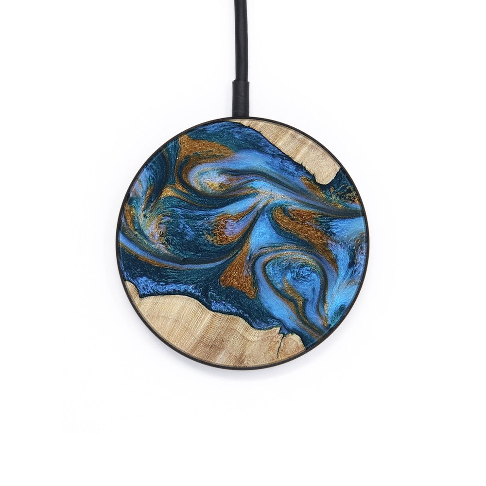 Perfectly simple, MagSafe compatible, USB-C, 1 of a kind Wireless Qi charger. CNC machined aluminum body. Every Wood+Resin inlay is unique and made at our shop in Elkhart, Indiana.