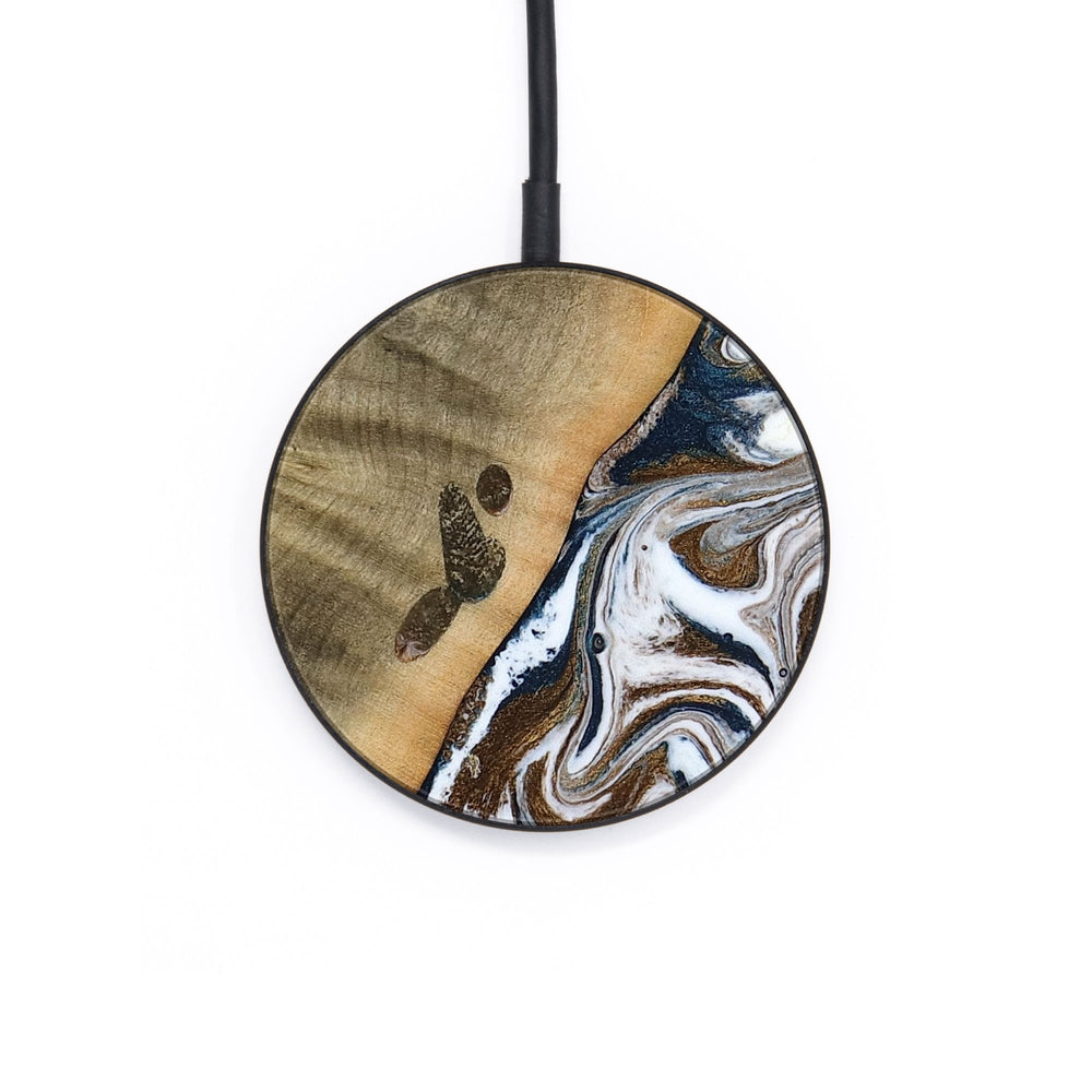 Perfectly simple, MagSafe compatible, USB-C, 1 of a kind Wireless Qi charger. CNC machined aluminum body. Every Wood+Resin inlay is unique and made at our shop in Elkhart, Indiana.