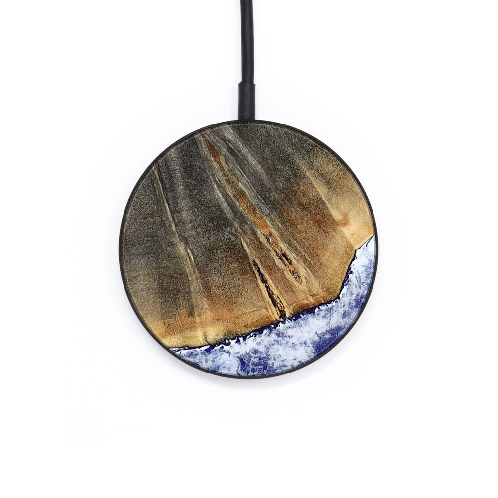 Perfectly simple, MagSafe compatible, USB-C, 1 of a kind Wireless Qi charger. CNC machined aluminum body. Every Wood+Resin inlay is unique and made at our shop in Elkhart, Indiana.