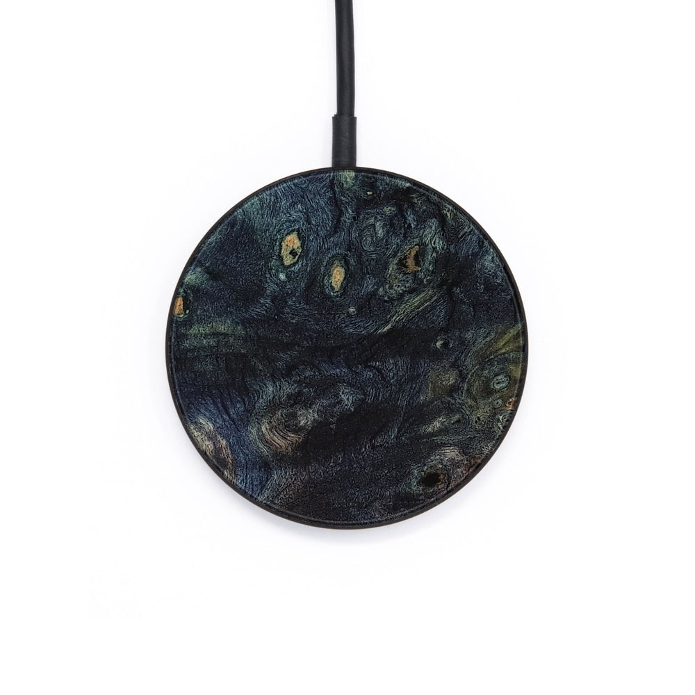 Perfectly simple, MagSafe compatible, USB-C, 1 of a kind Wireless Qi charger. CNC machined aluminum body. Every Wood+Resin inlay is unique and made at our shop in Elkhart, Indiana.