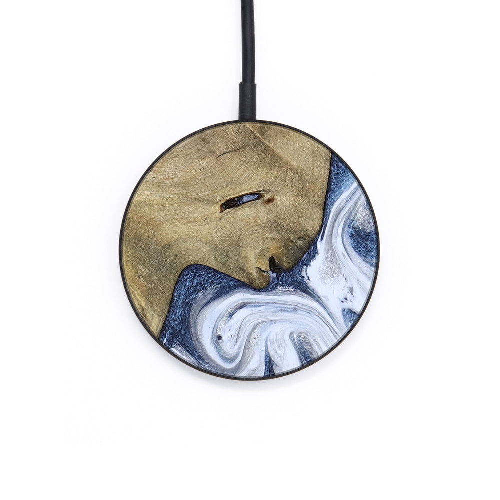 Perfectly simple, MagSafe compatible, USB-C, 1 of a kind Wireless Qi charger. CNC machined aluminum body. Every Wood+Resin inlay is unique and made at our shop in Elkhart, Indiana.
