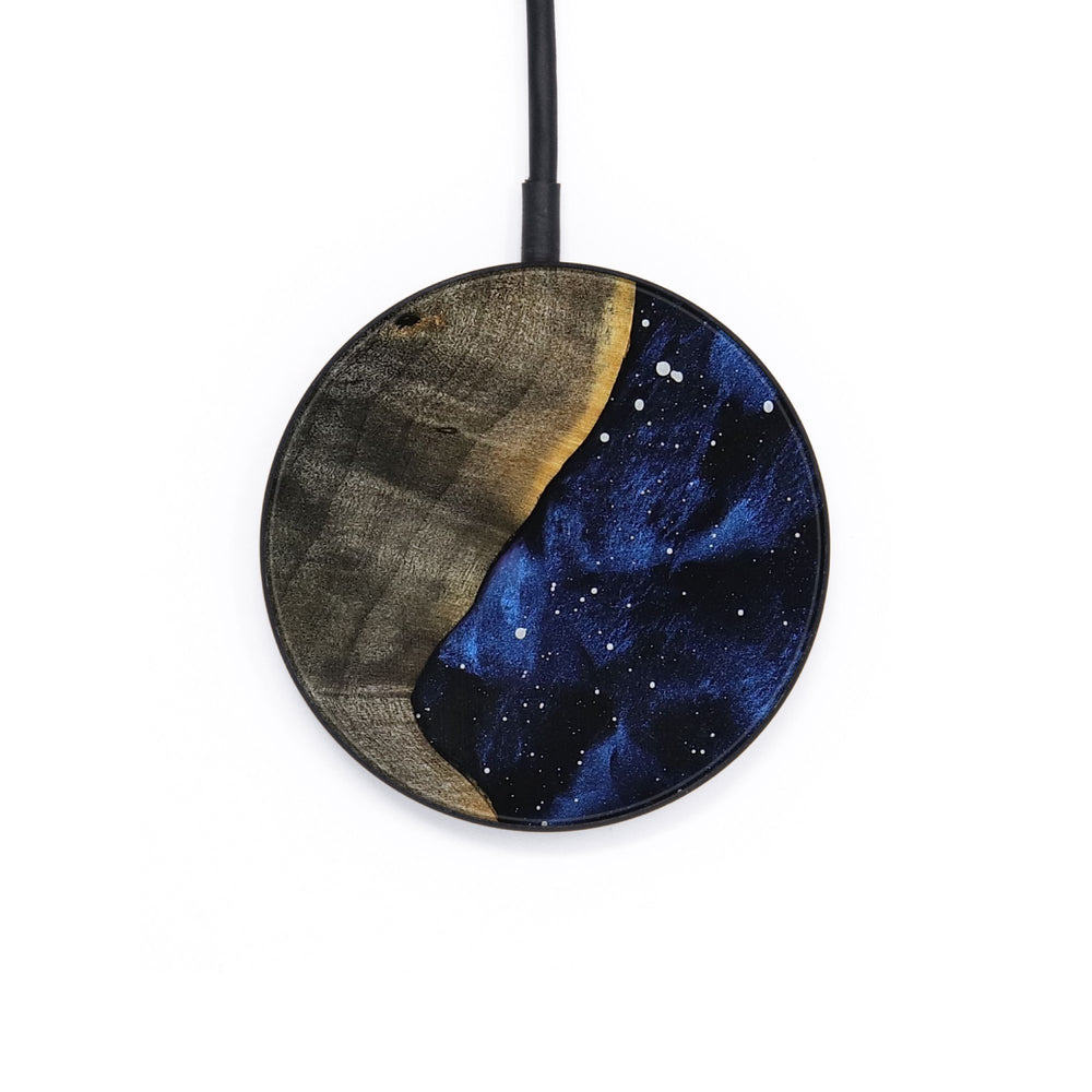 Perfectly simple, MagSafe compatible, USB-C, 1 of a kind Wireless Qi charger. CNC machined aluminum body. Every Wood+Resin inlay is unique and made at our shop in Elkhart, Indiana.